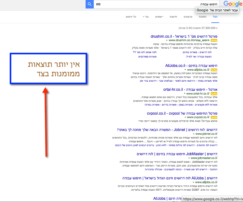 *בתמונה – תוצאות חיפוש בגוגל ישראל 20.2.2016 – ללא תוצאות בצידו השמאלי של הדף.