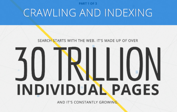 החלק הראשון של האינפוגרפיקה עוסק באופן שבו גוגל מוצא דפים באמצעות Crawling (סקירה אוטומטית) ומתייחס אליהם בכדי