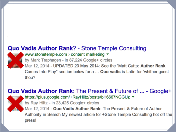 מה שמעניין זה שגוגל שבתחילת הדרך של הצגת תמונות גוגל פלוס בתוצאות החיפוש, אנשי הקידום וכמובן גוגל חשבו שזה ישפיע בצורה חיובית על ה CTR , כלומר, זה היה אמור לעזור לאנשים להכינס לאתרים, זה היה אמור לשפר לאתרים את אחוז הכניסות, ולטענת גוגל זה לא השפיע בכלל! ואין מה לדאוג מהסרת התמונות.