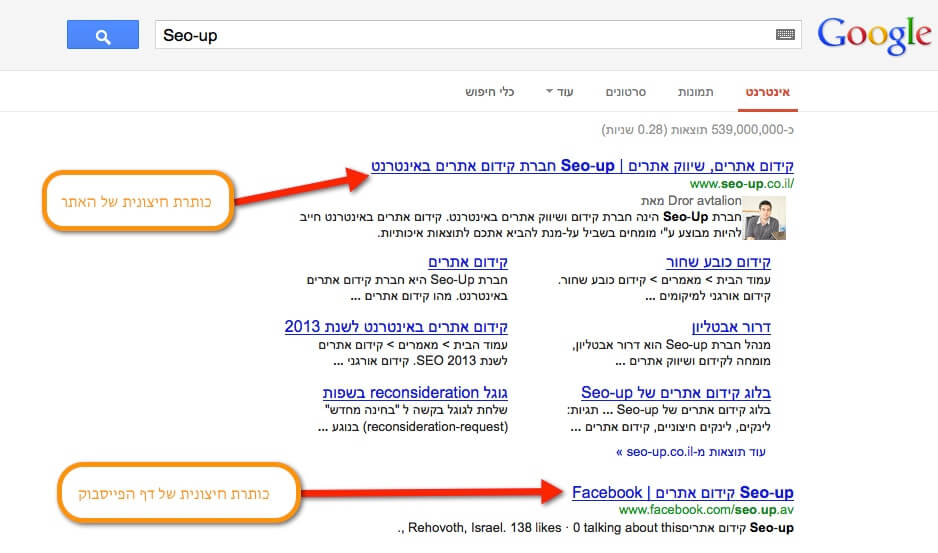 כותרת חיצונית בגוגל