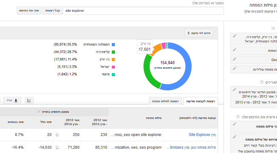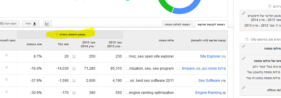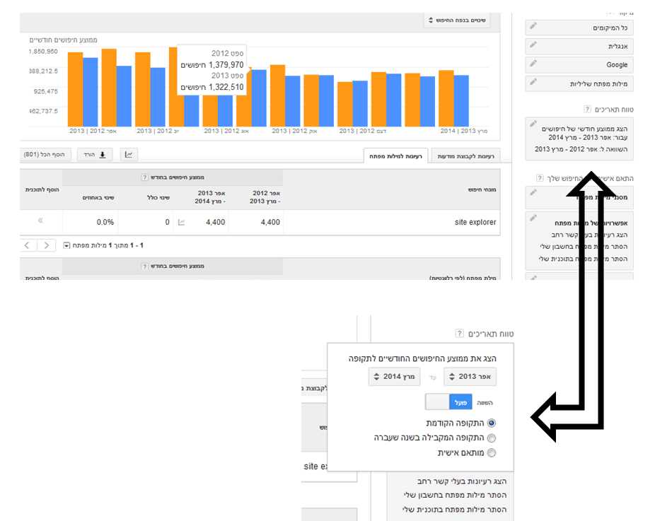 ולהשתמש בהשוואת פרקי זמן, כלומר, מה היה נפח החיפוש לפני שנה לעומת היום.
