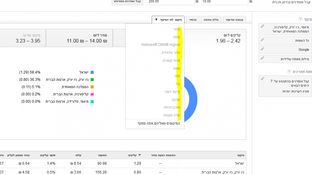 - מיצג ויזואלי מעולה של פילוח מילות המפתח ע"פ סוגי מכשירים או מיקומי יעד-