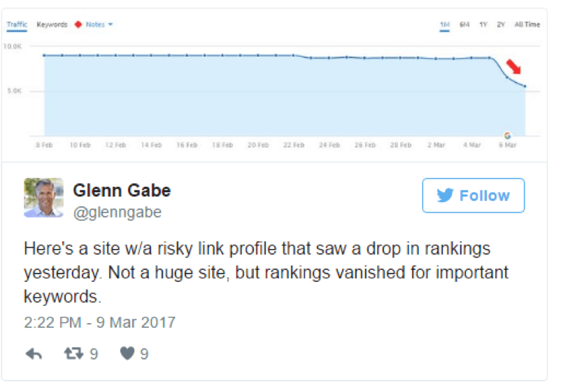 גלן גייב: אמרתי אתמול שלאתרים שקרסו היה פרופיל קישור נורא. אז בדוק את הצד השני של הירידה. זה גל ענק. נתוני GA.