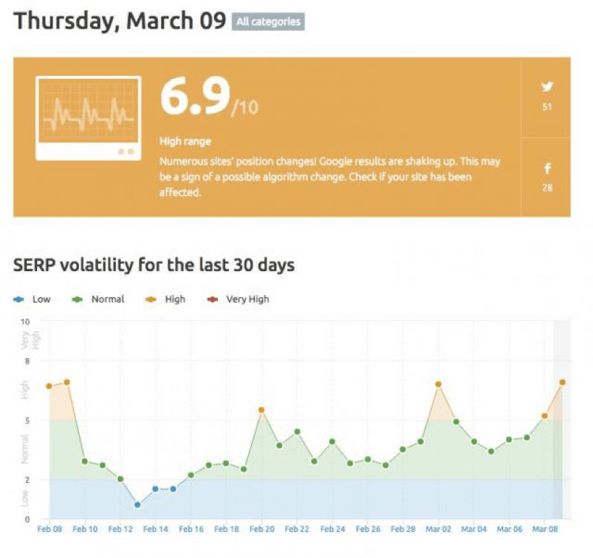 שינויי מיקום רבים של אתרים! תוצאות גוגל רוחשות. זה יכול להיות סימן לשינוי אלגוריתם. בדוק אם האתר שלך הושפע.