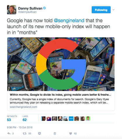 זאת ועוד, גוגל גילתה שבסופו של דבר היא תשתמש בגרסת המובייל של התוכן – כאינדקס הבסיסי.